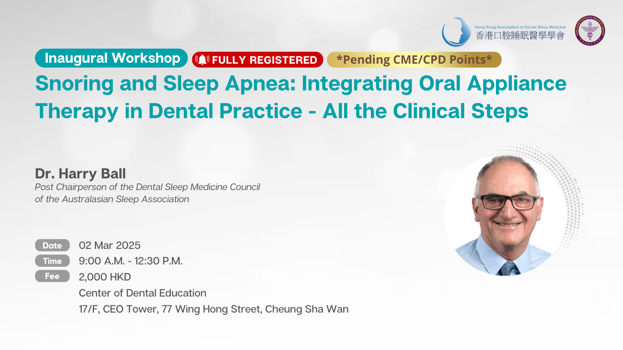HKADSM Inaugural Workshop: Snoring and Sleep Apnea: Integrating Oral Appliance Therapy in Dental Practice - All the Clinical Steps