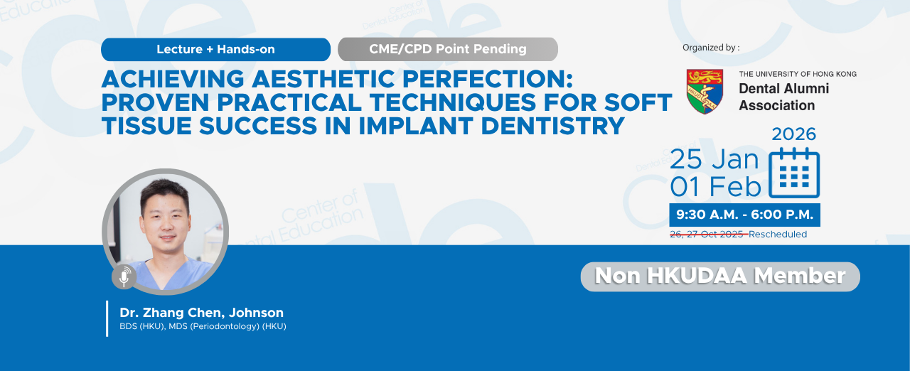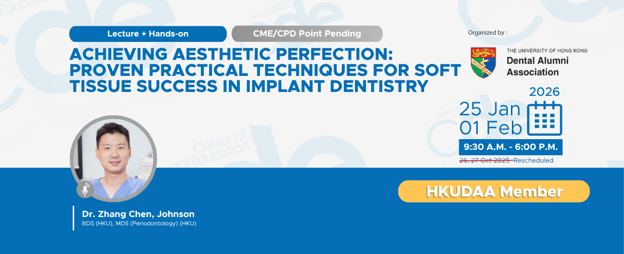 The old classic is now coming back in September 2021! With all its heritage in comprehensive care, but revamped to address the new challenges of the era of digital practice, the ITI HK Education week of 2021 will introduce a brand new dream-team and many new concepts! Under the directing of Prof. Mattheos, the HK ITI week will bring you the pioneering duo from Geneva Prof. Irena Sailer and Mr. Vincent Fehmer, our old friend Prof. Bjarni Pjetursson from Iceland, Prof. Chatchai Kunavisarut from Bangkok and more to be announced soon!